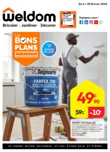 ST-ANDRÉ, BUTOR, SAVANNAH, ST-LEU, ÉTANG-SALÉ, ST-PIERRE Du 4 > 28 février 2026 49€ 90 -10€ 59€ 90 PANTEX 700 blanc 15L Peinture pour mur et plafond. Mate aux copolymères acryliques en dispersion aqueuse. Bonne opacité. Rendement 120m2. Coloris blanc. Soit le L à 3,33€ Réf : 24792631 - Rejoignez-nous !