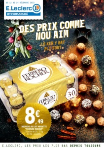 10 BALLOTIN CADEAU DE CHOCOLATS “HAMLET” 250g. Le kg : 35,36€. Par 2 (500g) : 13,26€ au lieu de 17,68€. Le kg : 26,52€. CALISSONS D’AIX AMANDINE “ROY RENÉ” 235g. Le kg : 42,34€. CHAMPS-ÉLYSÉES “LINDT” Assortiment, edition or, lait, noir. 468g. Le kg : 30,77€. Par 2 (936g) : 21,60€ au lieu de 28,80€. Le kg : 23,08€. LA BOITE DE CADEAU CHAMPS-ÉLYSÉES “LINDT” Assortiment, assortiment, assortis, lait, noir, or. 237g. Le kg : 48,48€. Par 2 (474g) : 17,23€ au lieu de 22,98€. Le kg : 36,35€. CONNAISSEURS PRALINÉS “LINDT” 409g. Le kg : 37,41€. Par 2 (818g) : 22,95€ au lieu de 30,60€. Le kg : 28,06€. COFFRET CADEAU DE CHOCOLATS “HAMLET” 250g. Le kg : 37,44€. Par 2 (500g) : 12,63€ au lieu de 18,72€. Le kg : 25,26€. 9€ ,36 3€ ,27 LE 1ER PRODUIT ACHETÉ LE 2e PRODUIT ACHETÉ -65% SUR LE 2e PRODUIT ACHETÉ 14€ ,40 7€ ,20 LE 1ER PRODUIT ACHETÉ LE 2e PRODUIT ACHETÉ -50% SUR LE 2e PRODUIT ACHETÉ 11€ ,49 5€ ,74 LE 1ER PRODUIT ACHETÉ LE 2e PRODUIT ACHETÉ -50% SUR LE 2e PRODUIT ACHETÉ 15€ ,30 7€ ,65 LE 1ER PRODUIT ACHETÉ LE 2e PRODUIT ACHETÉ -50% SUR LE 2e PRODUIT ACHETÉ 8€ ,84 4€ ,42 LE 1ER PRODUIT ACHETÉ LE 2e PRODUIT ACHETÉ -50% SUR LE 2e PRODUIT ACHETÉ 13€ ,90 ASSORTIMENT DE CHOCOLATS FRANCAIS “LE TEMPS DES FÊTES CÉMOI” Chocolats français sans alcool 440 g. Le kg : 31,59 €. Par 2 (880g) : 27,80€ avec 9,45€ en Ticket E.Leclerc. Également disponible en variétés Avec cerise à l’alcool, Chocolats au lait sans alcool ou Chocolats noirs sans alcool. avec la Carte Ticket E.Leclerc 68% sur le 2e produit CORNET “LINDOR LINDT” Assorti, assorti noir, assortiment caramel fleur de sel, assortiment edition de noel, assortiment snowball, lait. 337g. Le kg : 23,15€. Par 2 (674g) : 11,70€ au lieu de 15,60€. Le kg : 17,36€. 7€ ,80 3€ ,90 LE 1ER PRODUIT ACHETÉ LE 2e PRODUIT ACHETÉ -50% SUR LE 2e PRODUIT ACHETÉ 9€ ,95 12€ ,84 DE RÉDUCTION IMMÉDIATE -2€ ,89